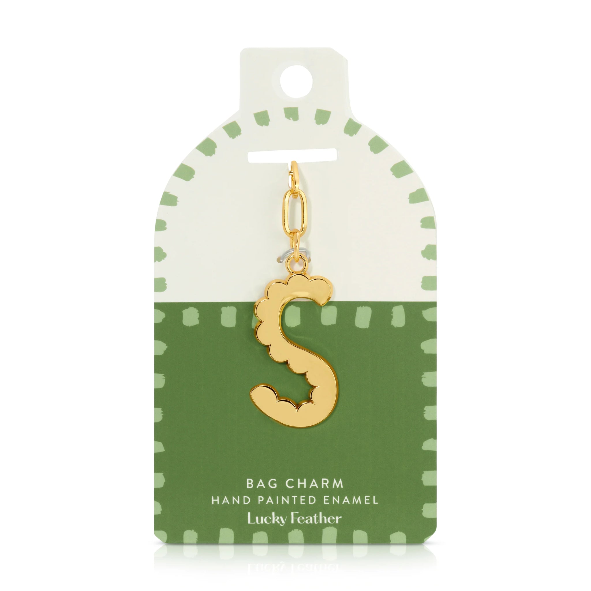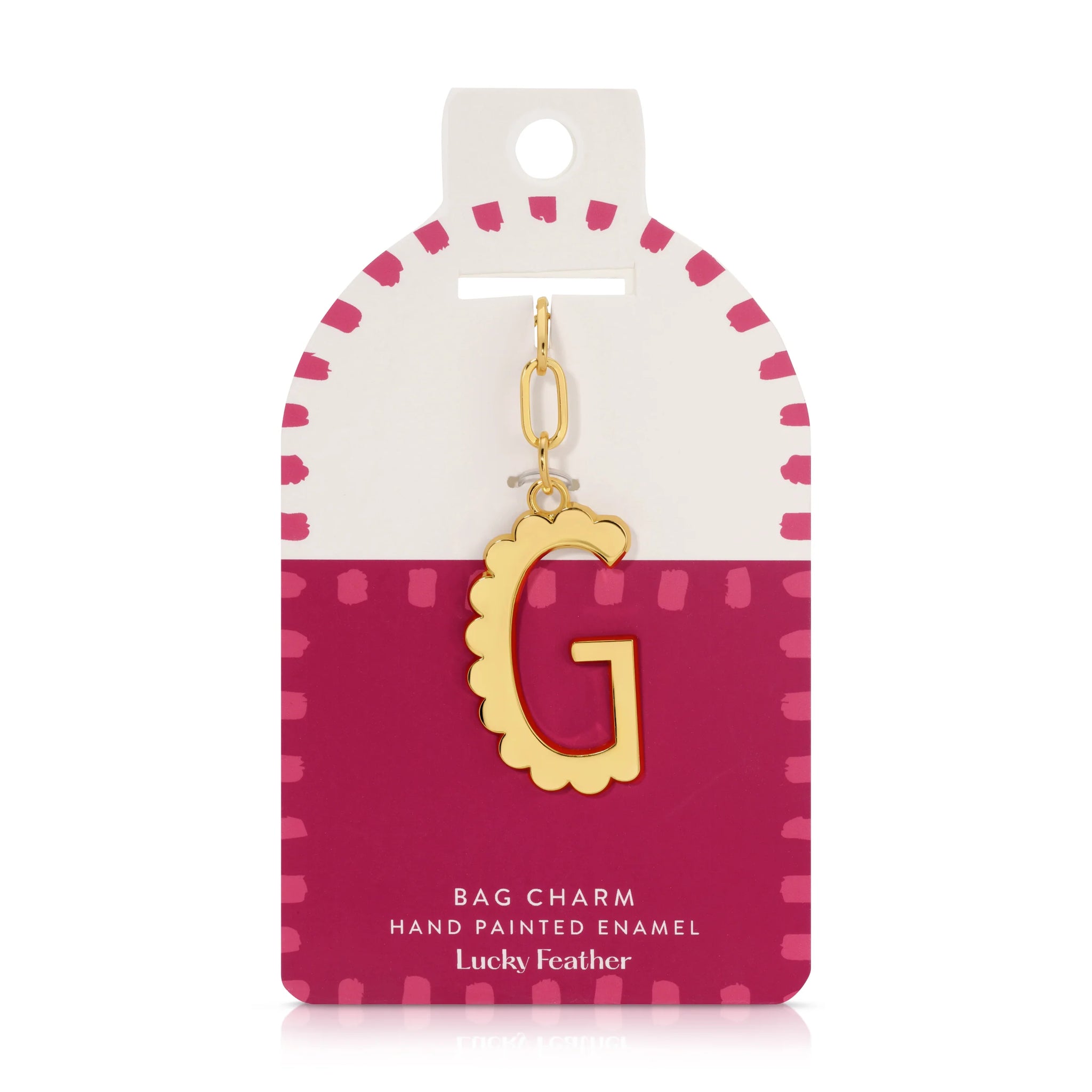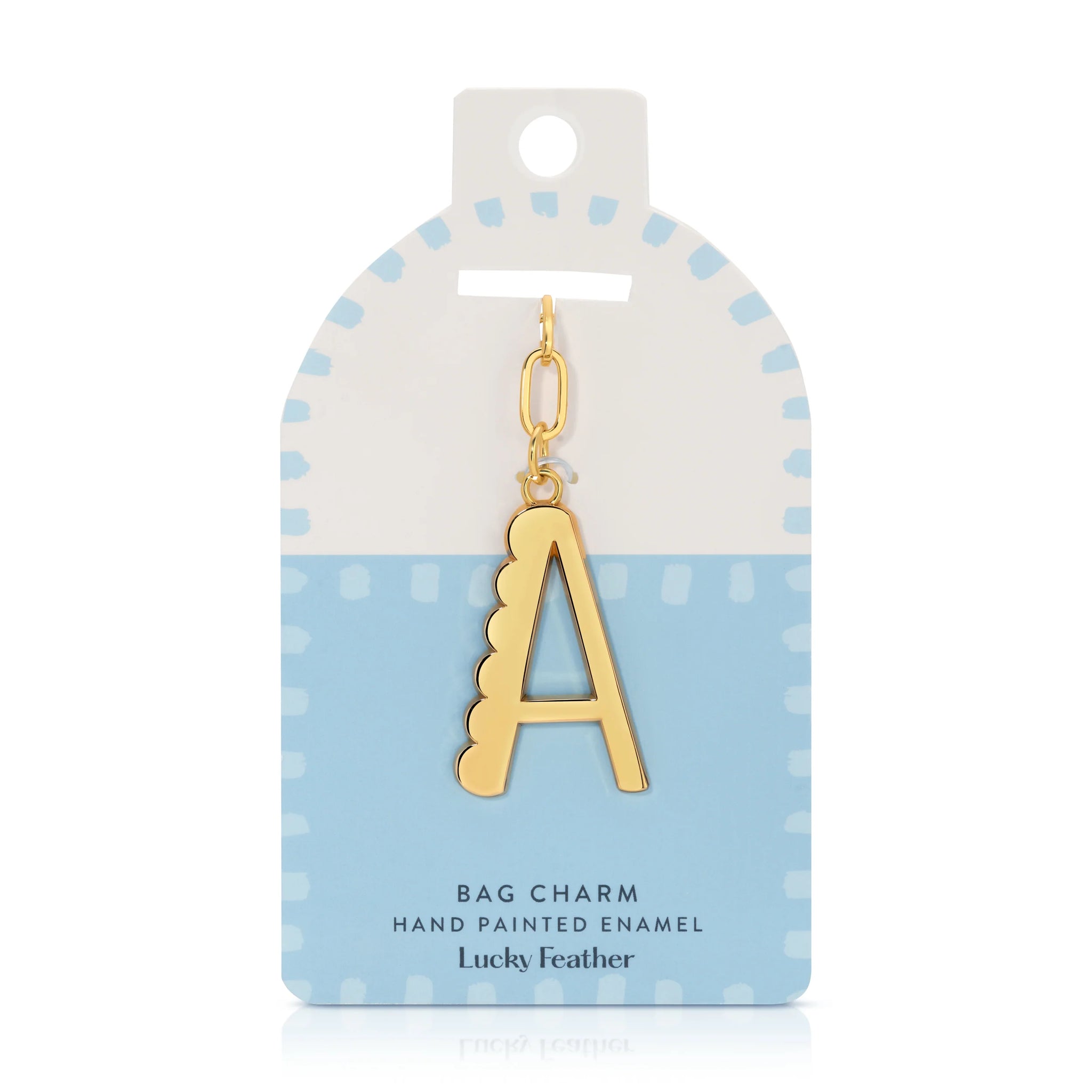 Add a personal touch with our chic 14k gold-plated Enamel Initial Bag Charms! These elegant letter charms feature a sturdy keyring and clasp.