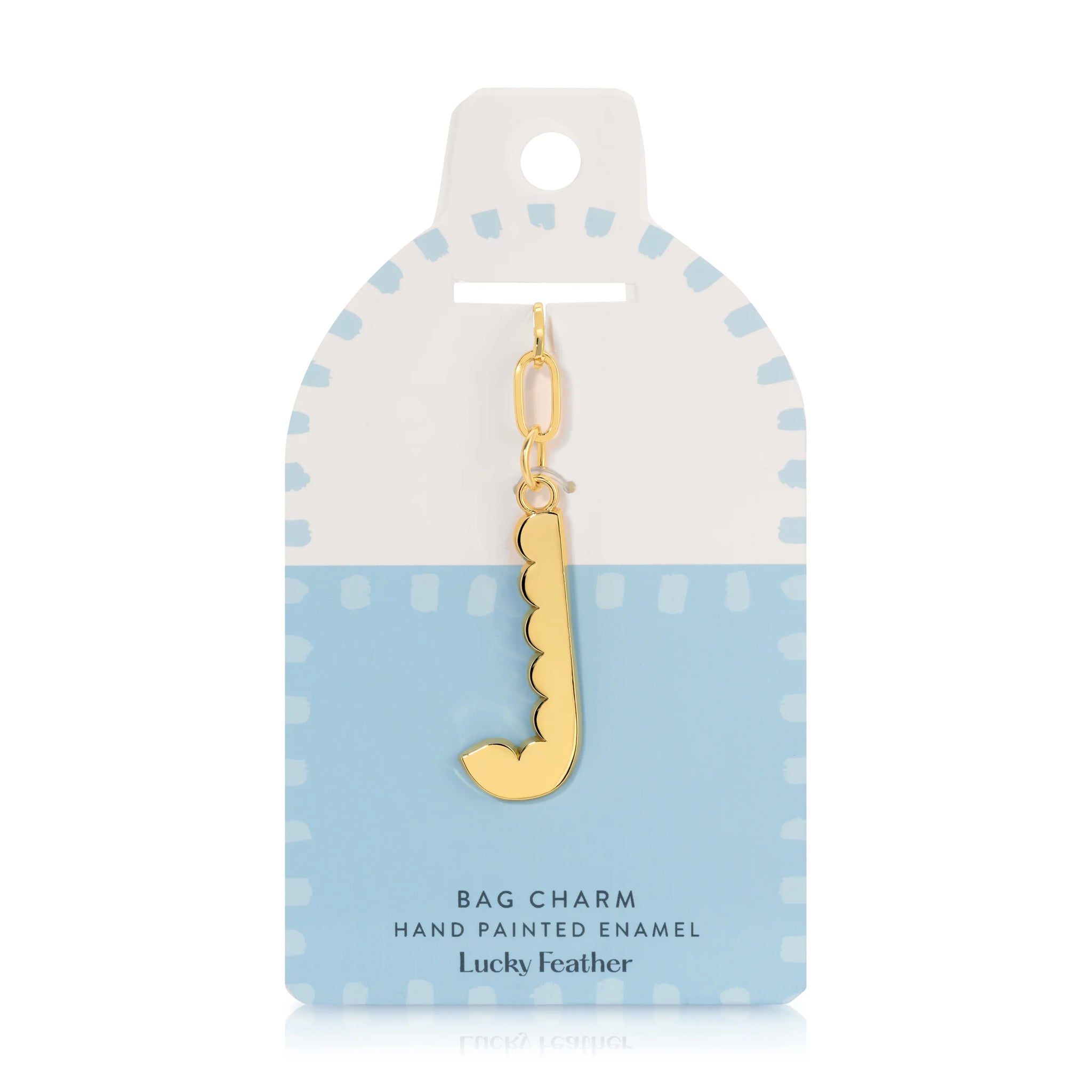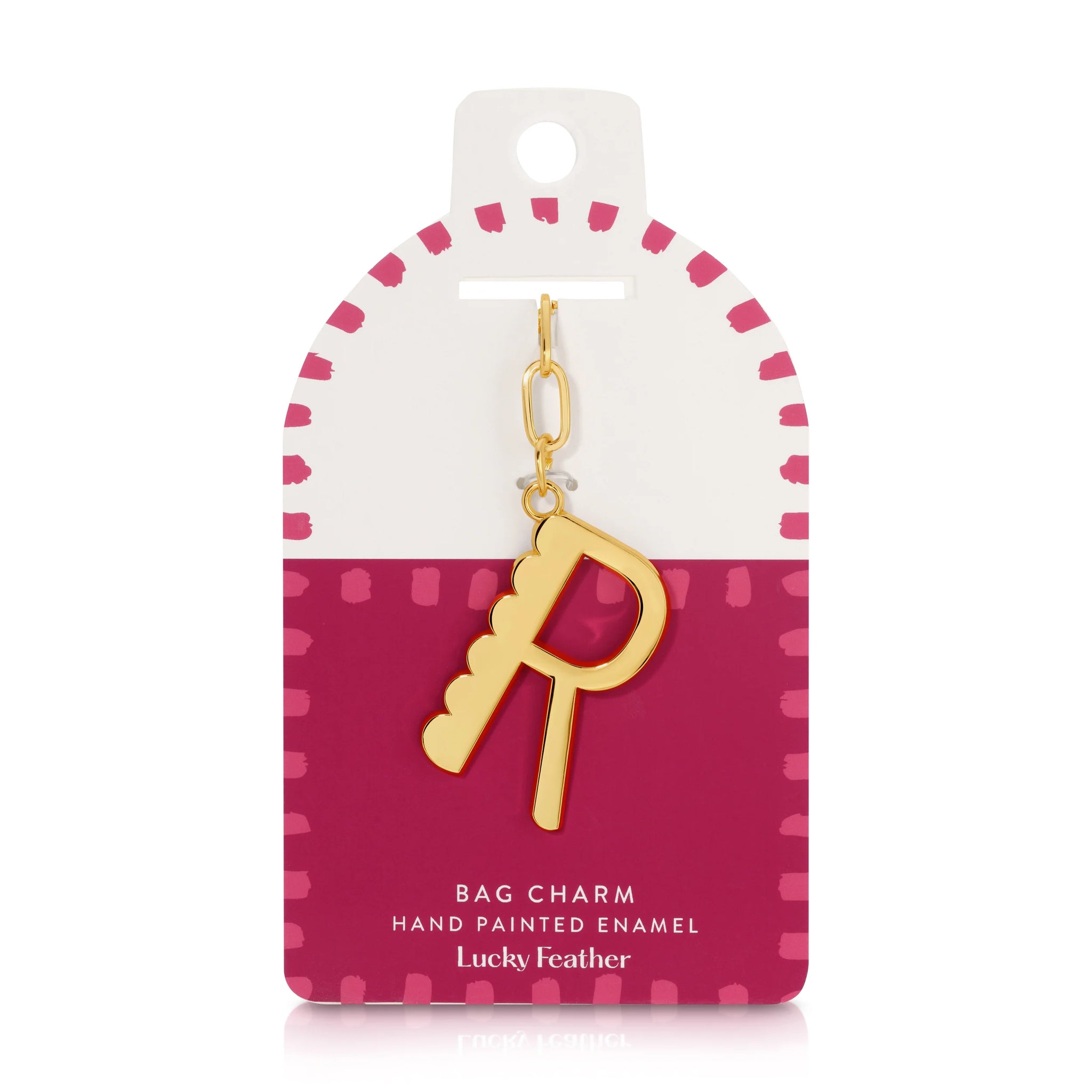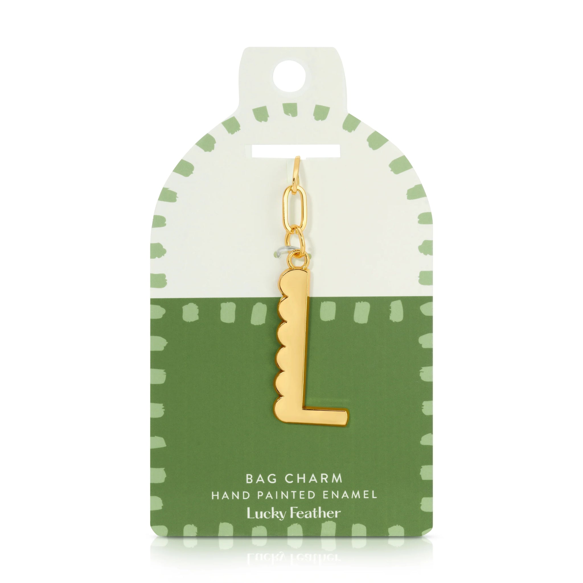 Add a personal touch with our chic 14k gold-plated Enamel Initial Bag Charms! These elegant letter charms feature a sturdy keyring and clasp.