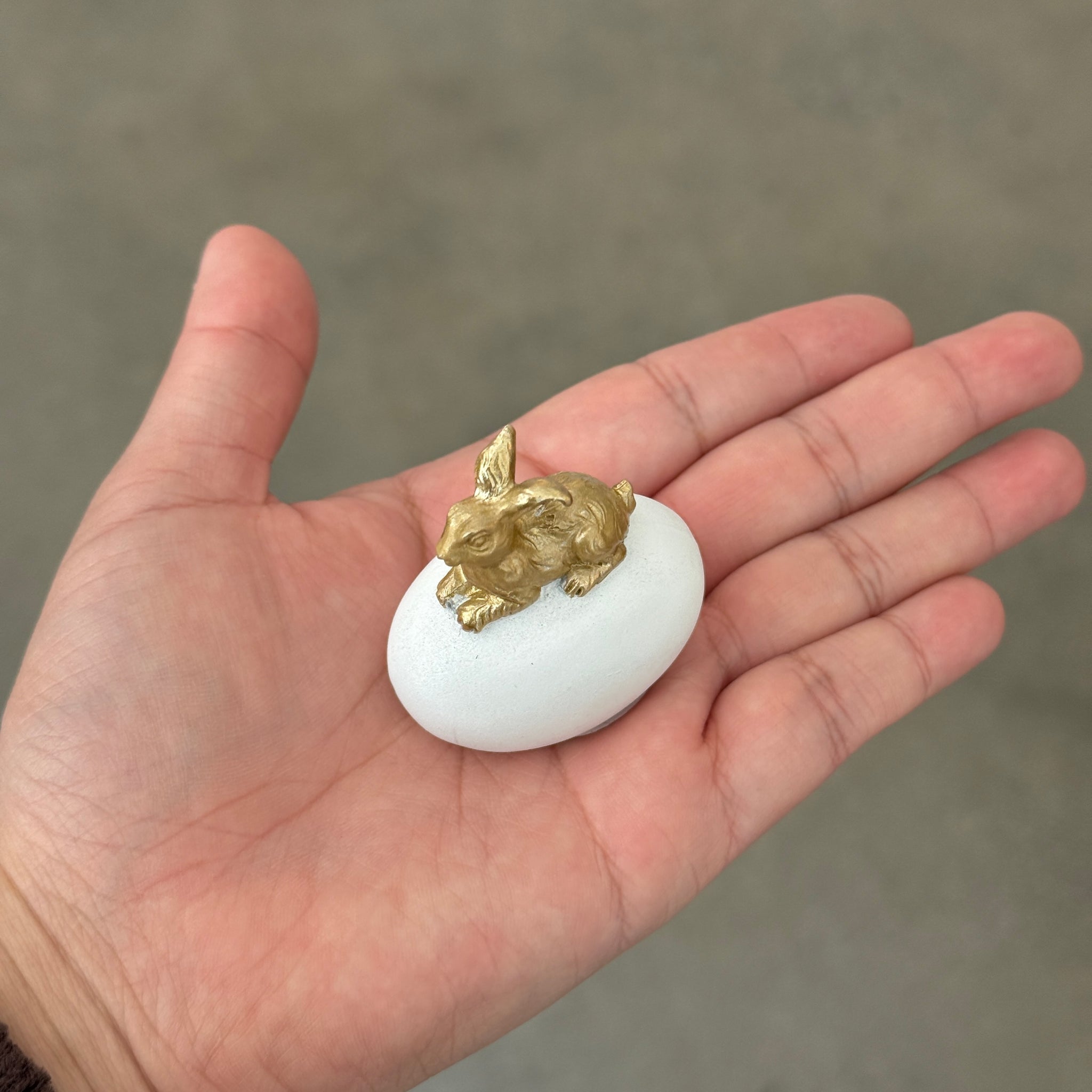 Enhance your home decor with the Gold Bunny On Egg Figurine. Crafted for durability, this charming piece adds warmth and personality to any space. Its compact size makes it perfect for solo displays or as part of a collection, bringing creativity to your home.