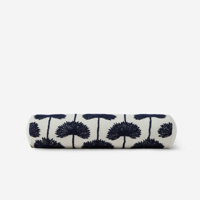 The Palm Leaf Embroidered Bolster Pillow features a cylindrical shape that modernizes the classic palm leaf design. Made from natural cotton slub with a synthetic down insert, it combines texture and comfort. The removable cover facilitates care, while its elegant embroidery enhances any décor, offering versatility and charm.