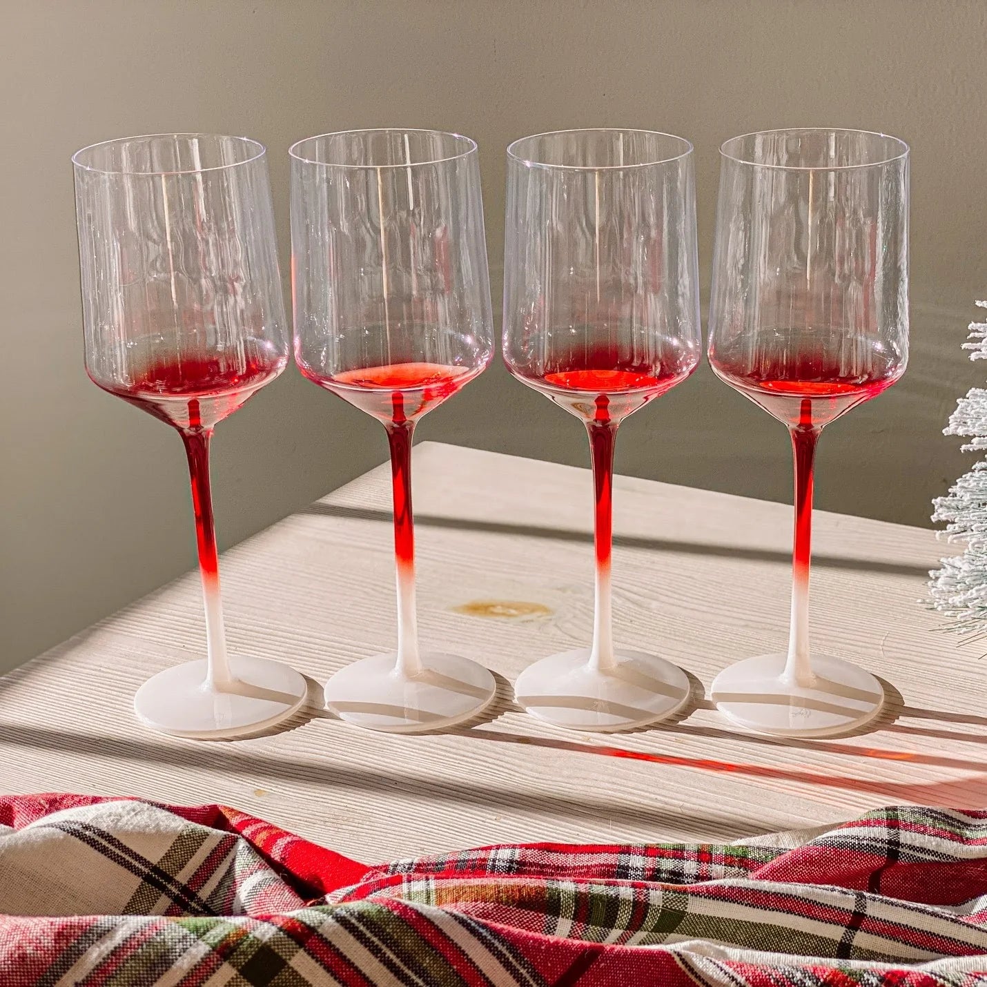 Elevate your holiday celebrations with our exquisite Peppermint Wine Glass Set of Four. Hand-blown and featuring a festive red and white design, these glasses add a touch of craftsmanship and flair to any occasion. Packaged in luxury packaging, they make for a perfect gift or addition to your own table setting. Cheers to joyful moments and cheerful sips!