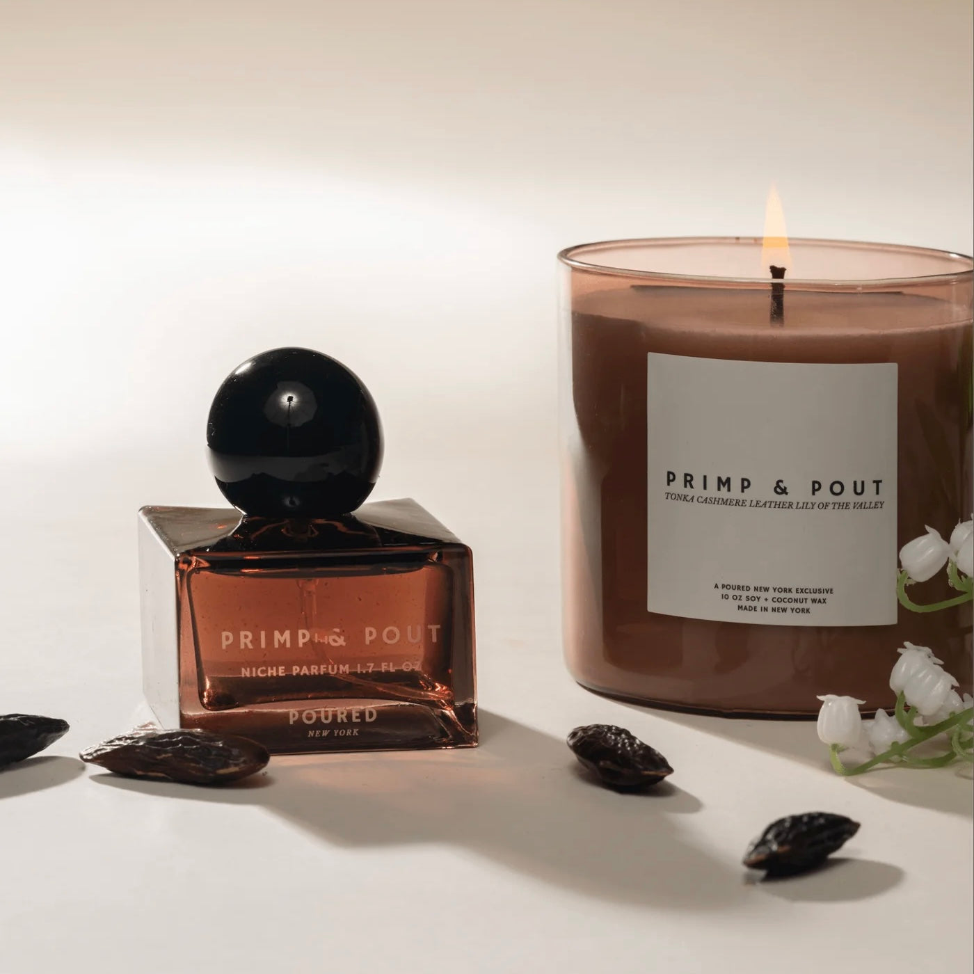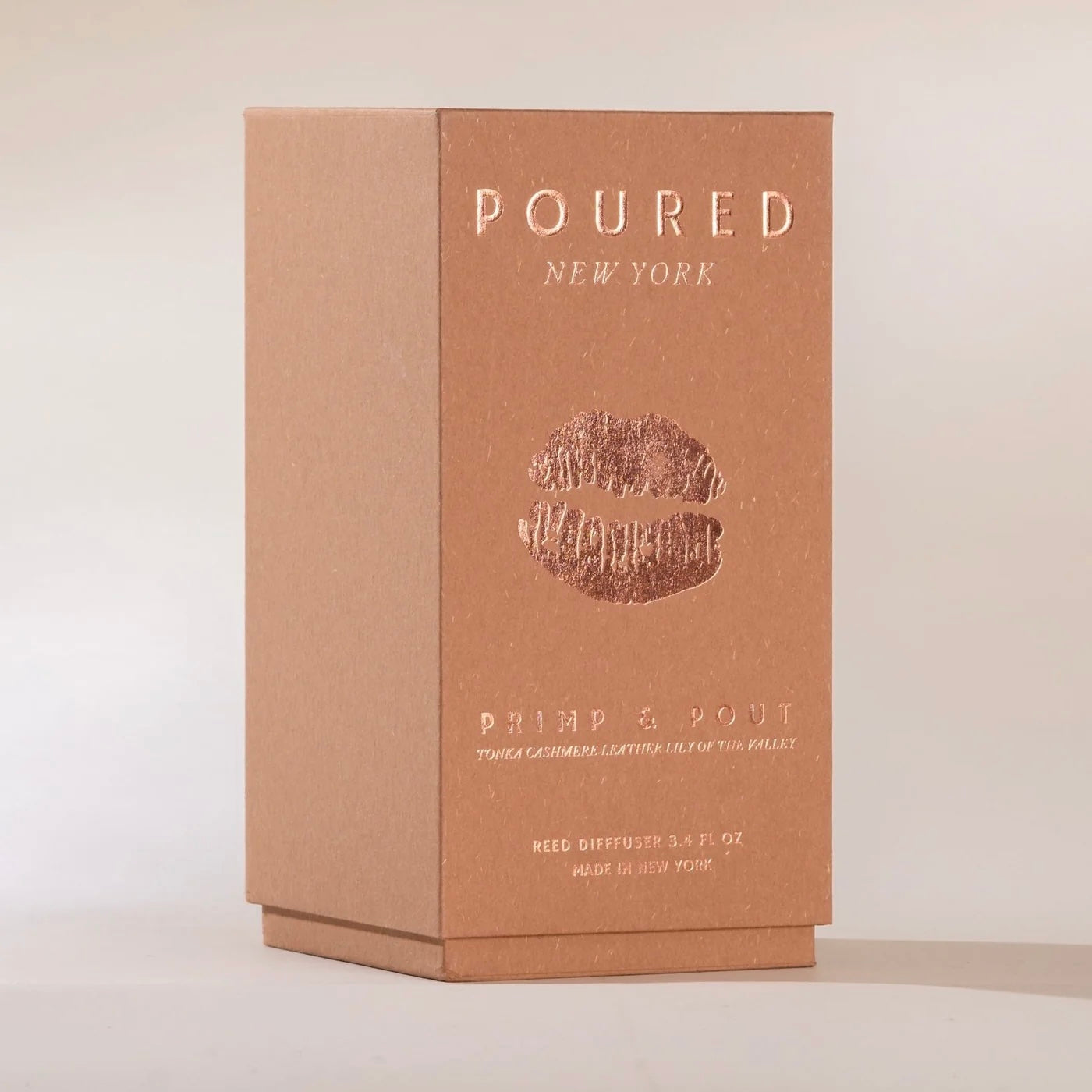 Poured NY Primp & Pout is a sophisticated fragrance available as a Niche Parfum, Diffuser, and 10oz Candle. This scent combines creamy tonka, soft cashmere, and bold leather, offering an elegant balance of comfort and intrigue. Suitable for any occasion, it transitions seamlessly from day to evening wear.