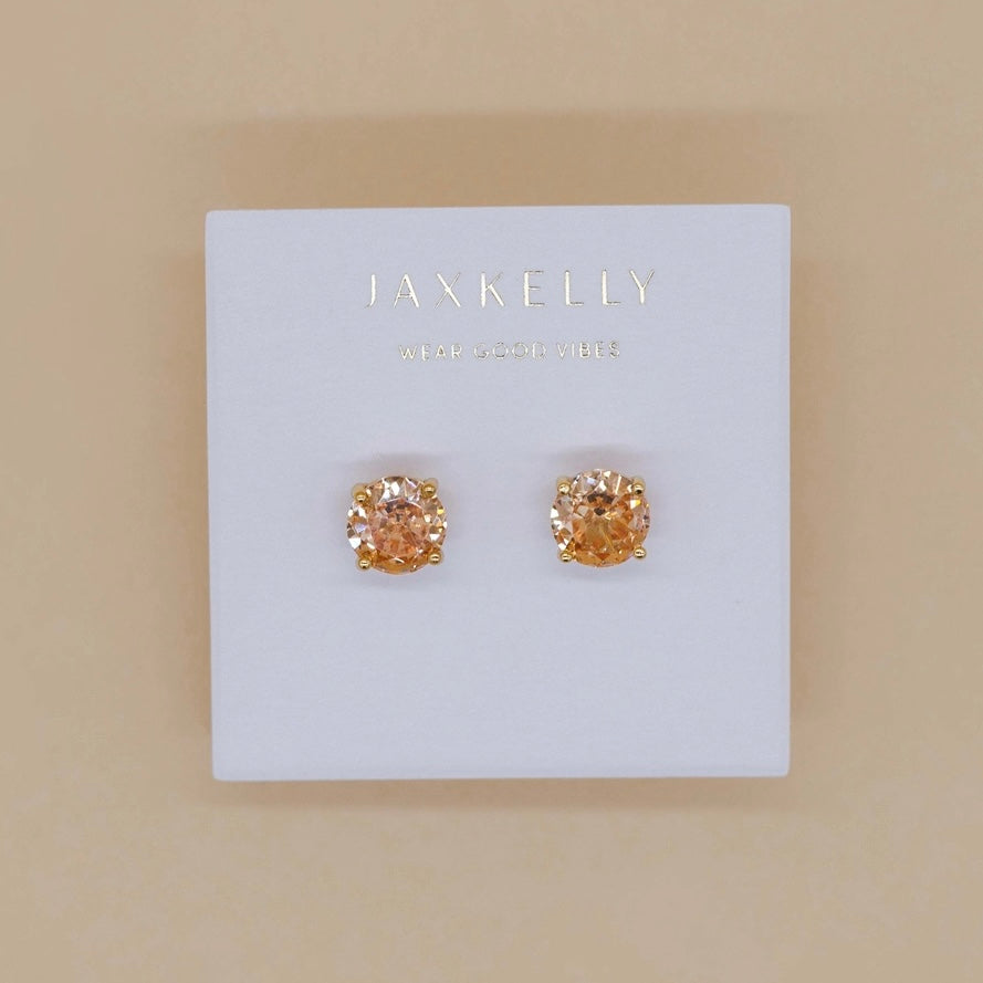 The Round CZ Stud Earrings feature a 6mm round cut cubic zirconia set in hypoallergenic, surgical-grade stainless steel for durability. With an 18k gold-plated finish, these minimalist earrings provide a versatile accessory for both daily wear and special occasions, ensuring comfort and style without irritation.
