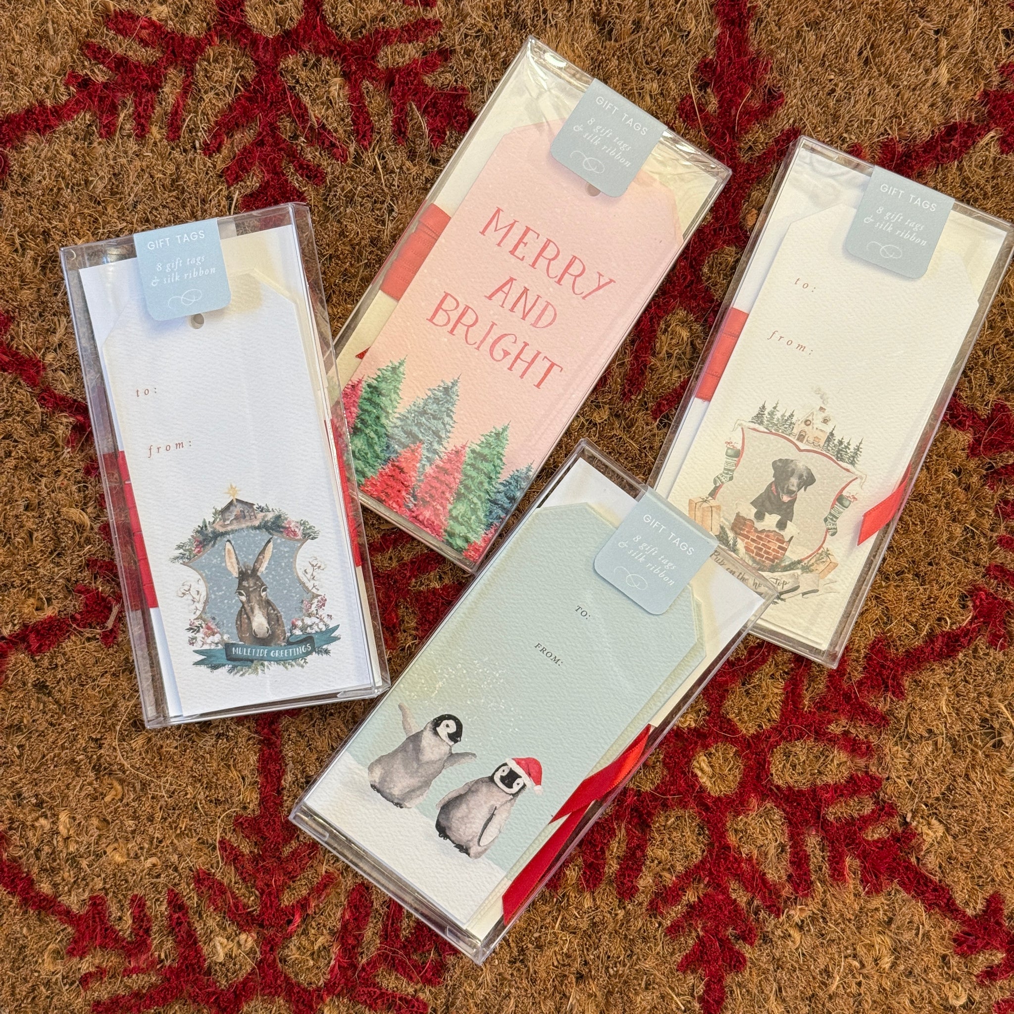 Add the perfect finishing touch to your holiday gifts with these watercolor Christmas pun gift tags. Printed on luxe watercolor paper with pre-drilled holes, each set includes 8 matching tags and a bobbin of hand-dyed silk ribbon. Choose from four styles, each packaged in a clear box for easy gifting.