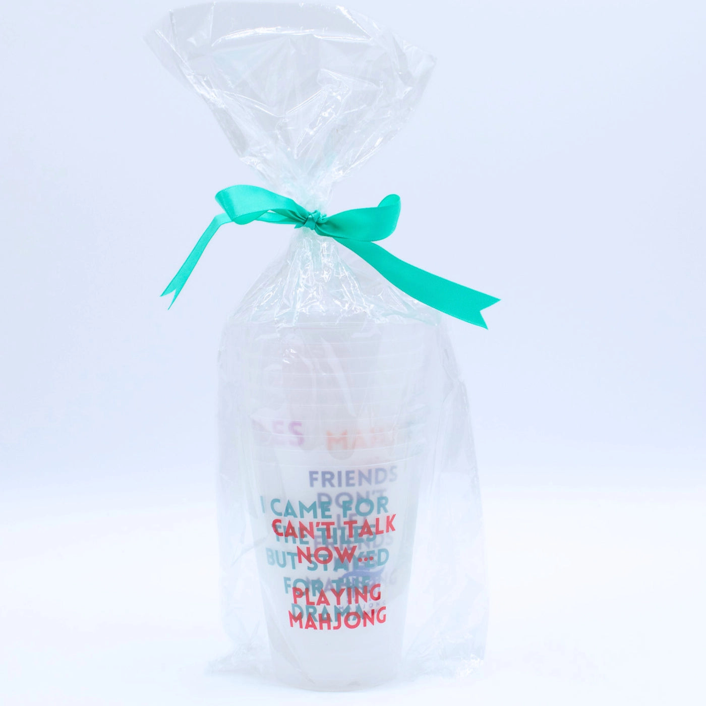 Upgrade your game nights with our Mahjong Frosted Cups! This 10-pack set includes 10 different colored cups, each featuring a unique mahjong phrase. With a 16 oz capacity and durable, reusable plastic material, these cups are perfect for any drink and won't break if dropped. Plus, they make it easy to keep track of your drink during intense mahjong matches. Add them to your game night essentials today!