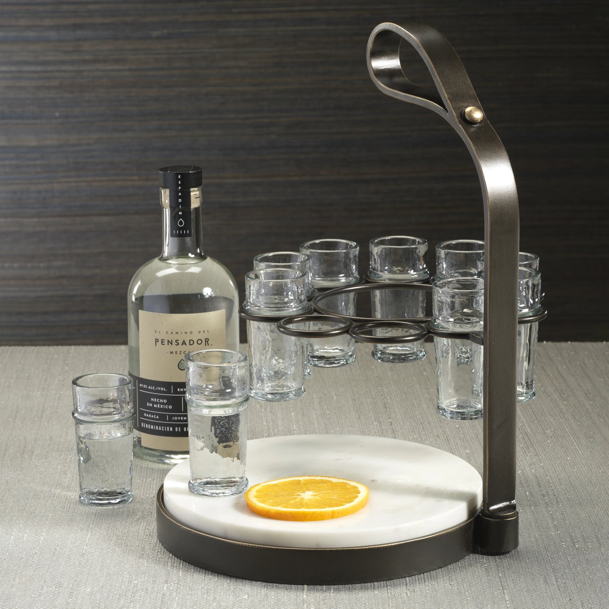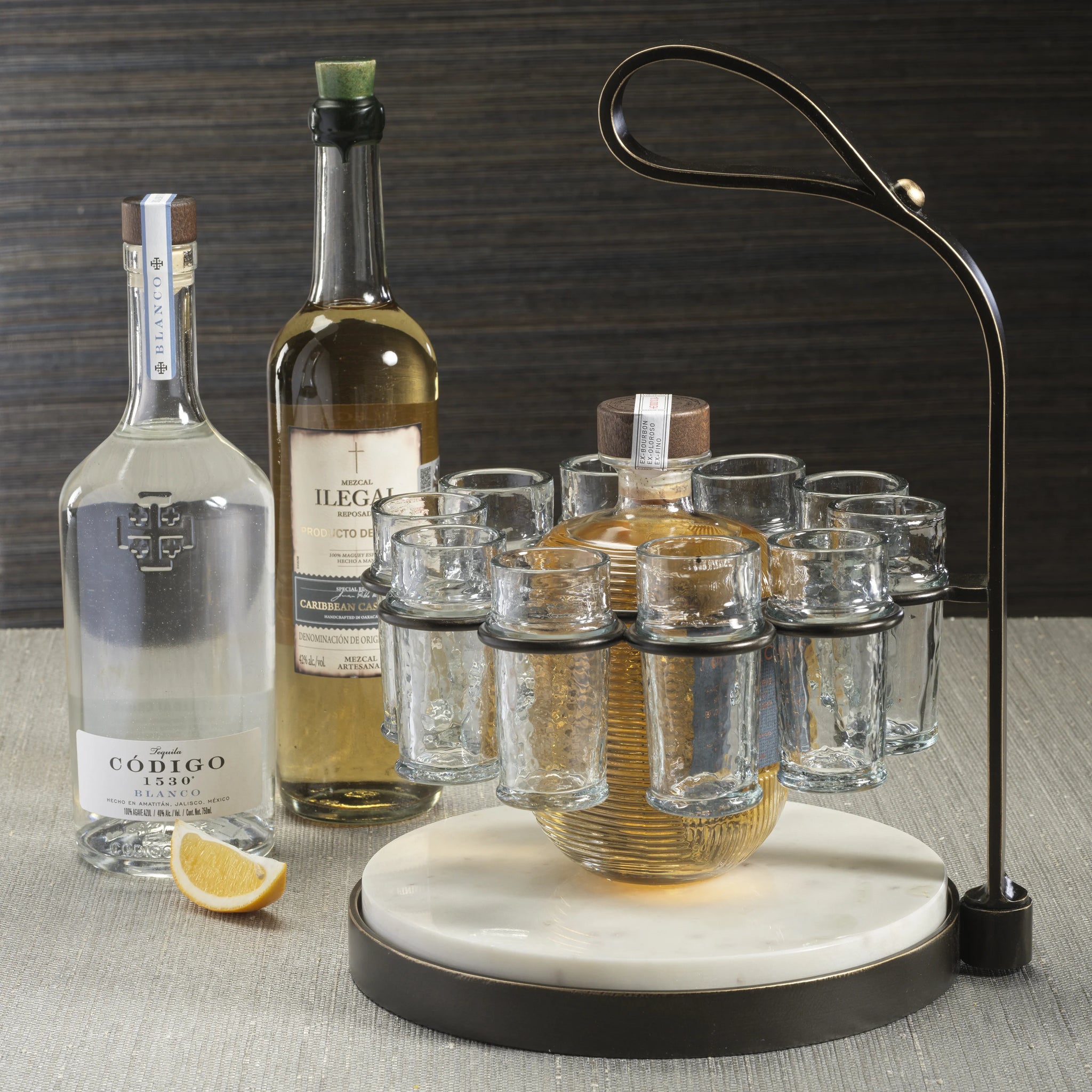 The ZODAX Tequilero 10 Shot Tequila Set comes with a stylish marble cutting board, and dark bronze finish. It’s perfect for serving and displaying your favorite tequilas.