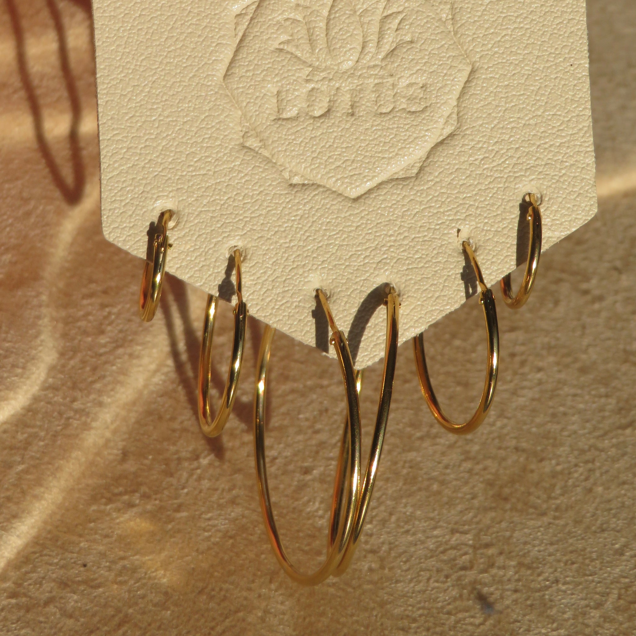 Enhance your jewelry collection with our Hoop Earrings Trio set, featuring two styles in either sterling silver or gold-plated finish. Perfect for adding a touch of sophistication and versatility to your looks, these earrings are a must-have for any fashion-conscious individual.