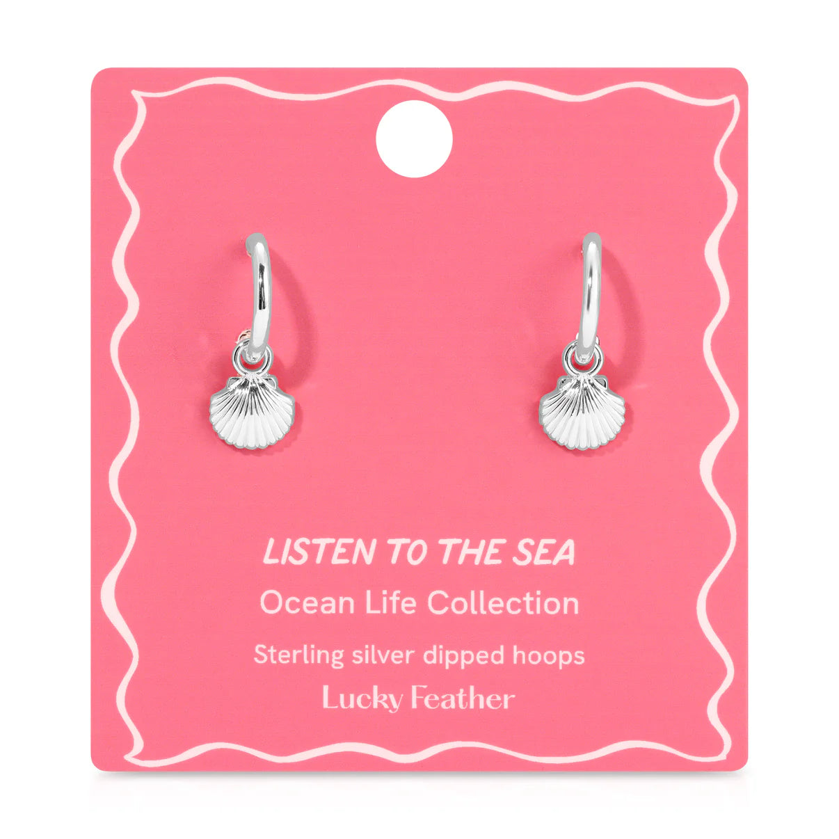 Add some ocean-inspired charm to your summer style with these Silver Ocean Life Earrings. Lightweight and available in three styles. Each charm is 10mm and dipped in sterling silver, and comes packaged in a bright pink "LISTEN TO THE SEA" card.