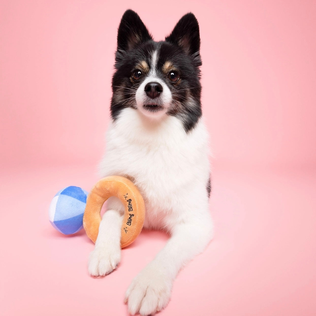 Introducing Dog Toys from Specks and Pets, with four trendy styles to choose from. Watch your pup go wild with our Chill Pill, Espawsso Muttini, Ruffin Rover, and Bling Bling Diamond Ring toys. Made with soft plush and an irresistible squeaker, it's the perfect way to keep your furry friend entertained and stylish.