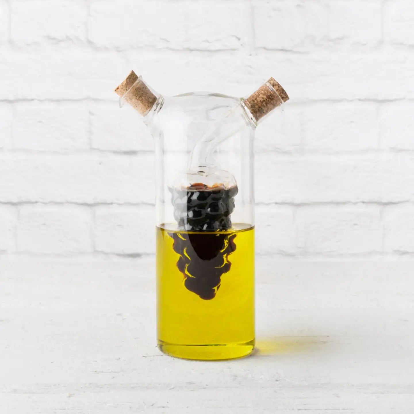 A beautiful addition to any kitchen, our Grapevine Cruet serves oil and vinegar from the same bottle. With cork stoppers and a grape-bunch motif, it's perfect for any wine lover. 2 in 1 hand-blown glass.