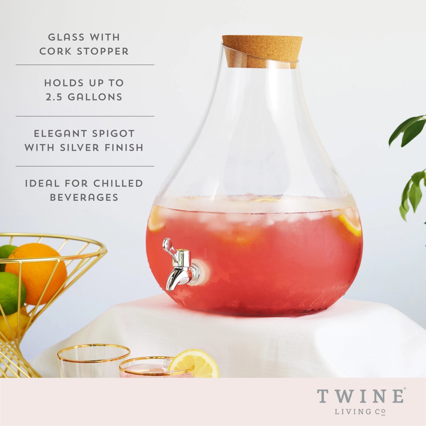 Serve your guests in style with our Pearl Shaped Glass Beverage Dispenser! This elegant carafe holds 2.5 gallons of your favorite beverage, making it perfect for backyard celebrations. The smooth glass and easy-open cork top, paired with a bronze spigot, adds a unique touch to any event. Crafted with care from glass and a silver-painted plastic spigot for long-lasting use. Hand wash for easy maintenance.