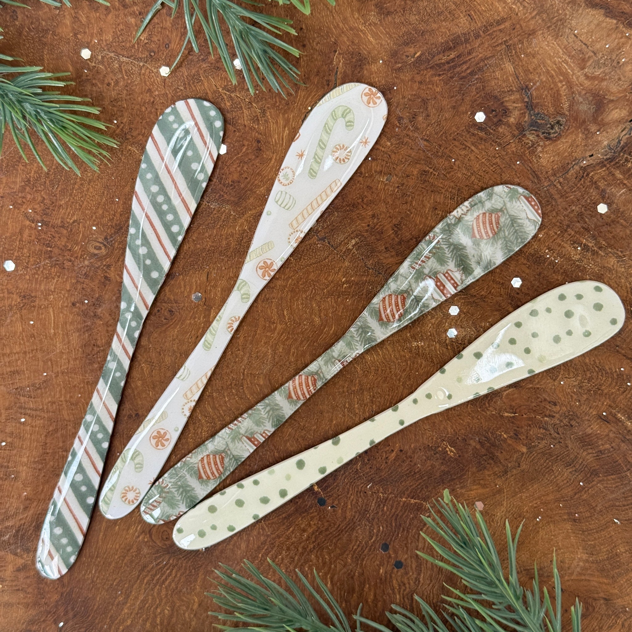 Holiday Stainless Steel Canape Knives available in four unique styles, each sold separately. Perfect for serving hors d'oeuvres and appetizers, these knives are a must-have for any festive gathering.