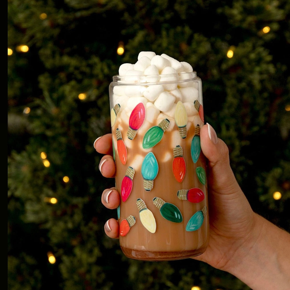 Featuring a hand-painted design of vintage-inspired Christmas bulbs, this glass adds a nostalgic touch to every sip. With a bamboo lid and stainless steel straw included, it's perfect for enjoying your favorite seasonal drinks.