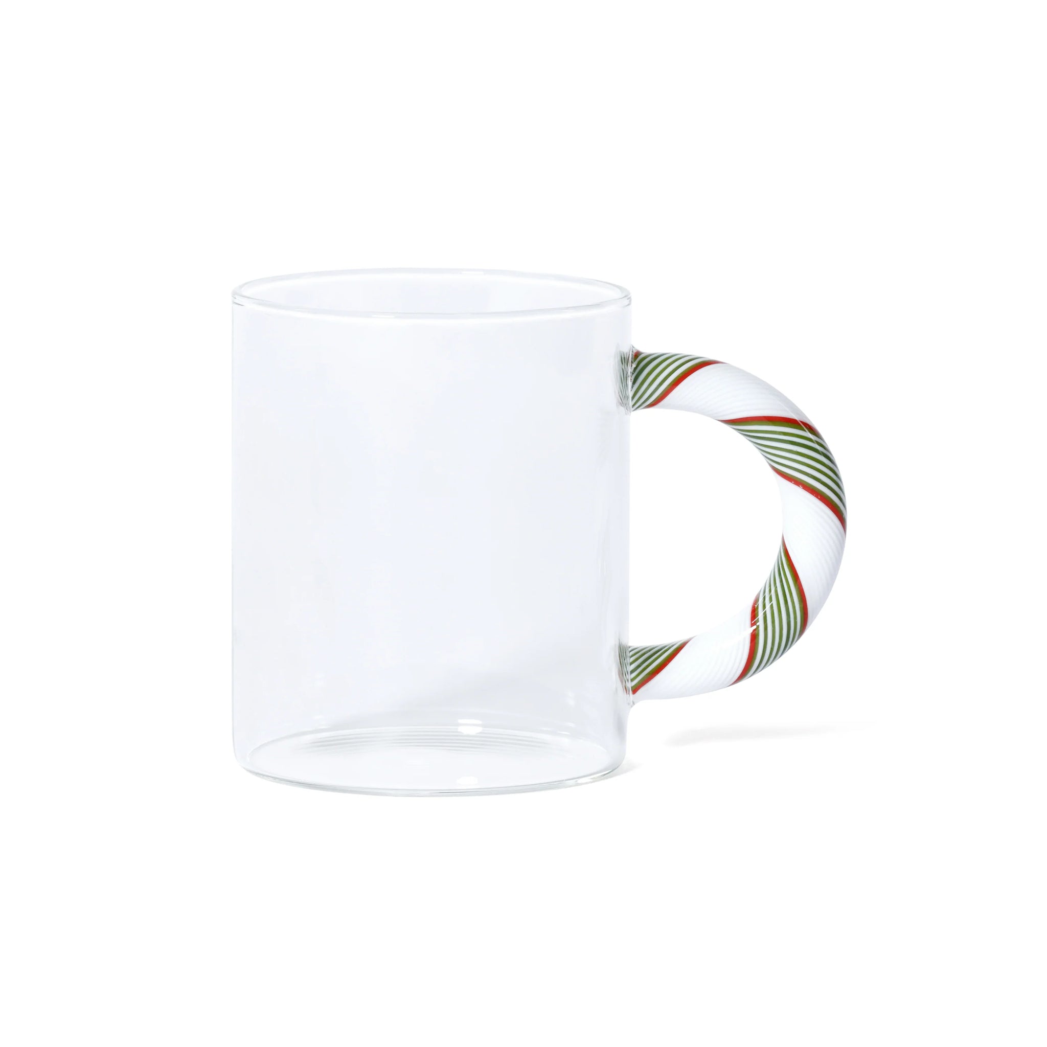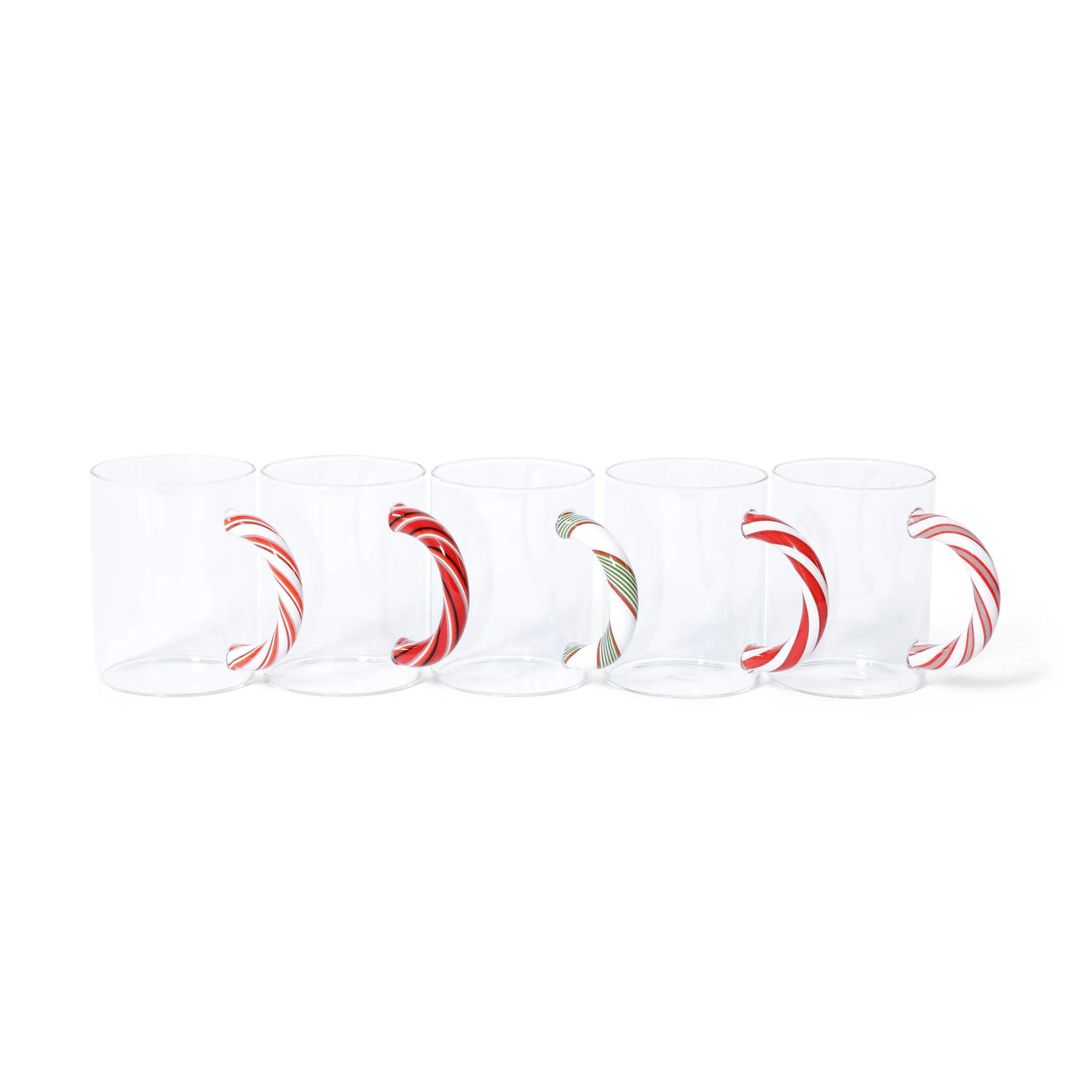 These holiday mugs from Zodax feature candy cane stripped handles and are available in a variety of five colors, each sold separately.