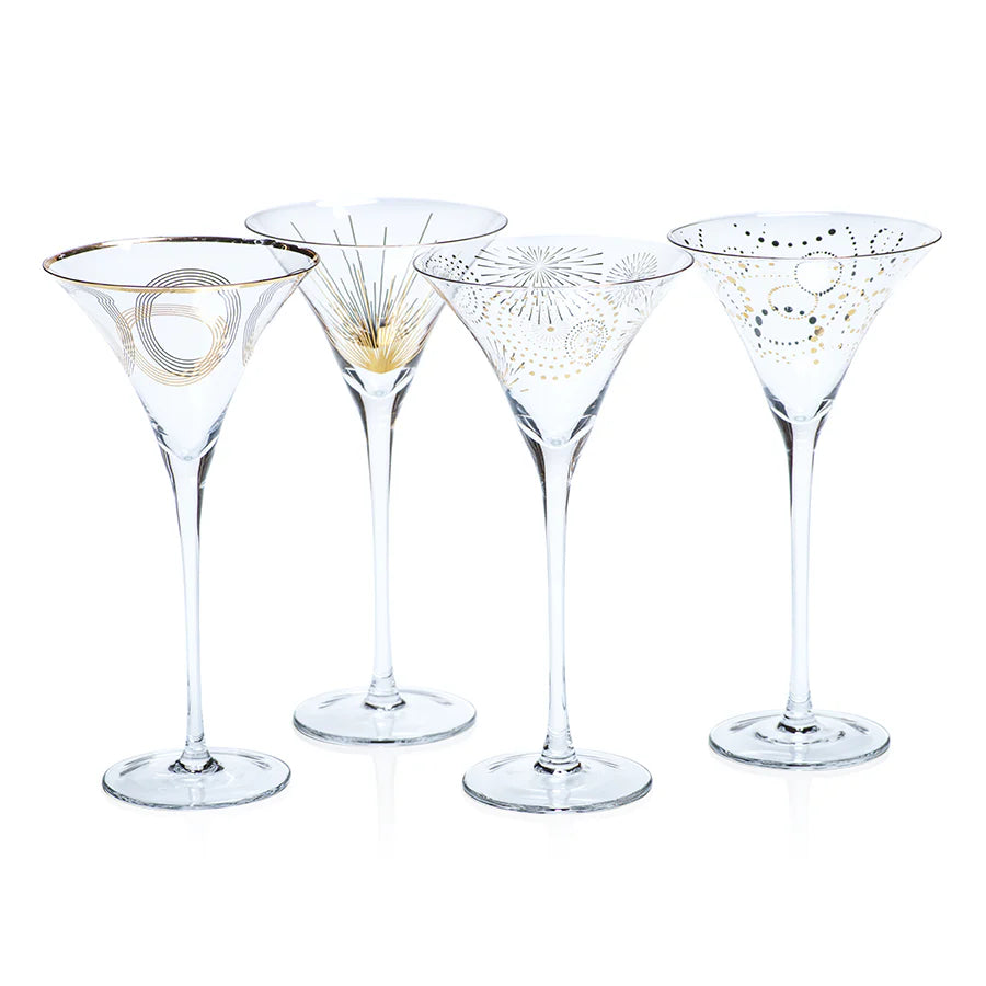 The ZODAX Celebration Martini Glass Assortment showcases four distinct designs. Each sold separately.