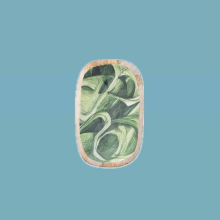 These Enamel Mango Wood Small Dishes are available in eight unique styles. Handcrafted from mango wood and coated with a durable enamel finish, this dish is perfect for serving appetizers, dips, and more. Each style sold separately.