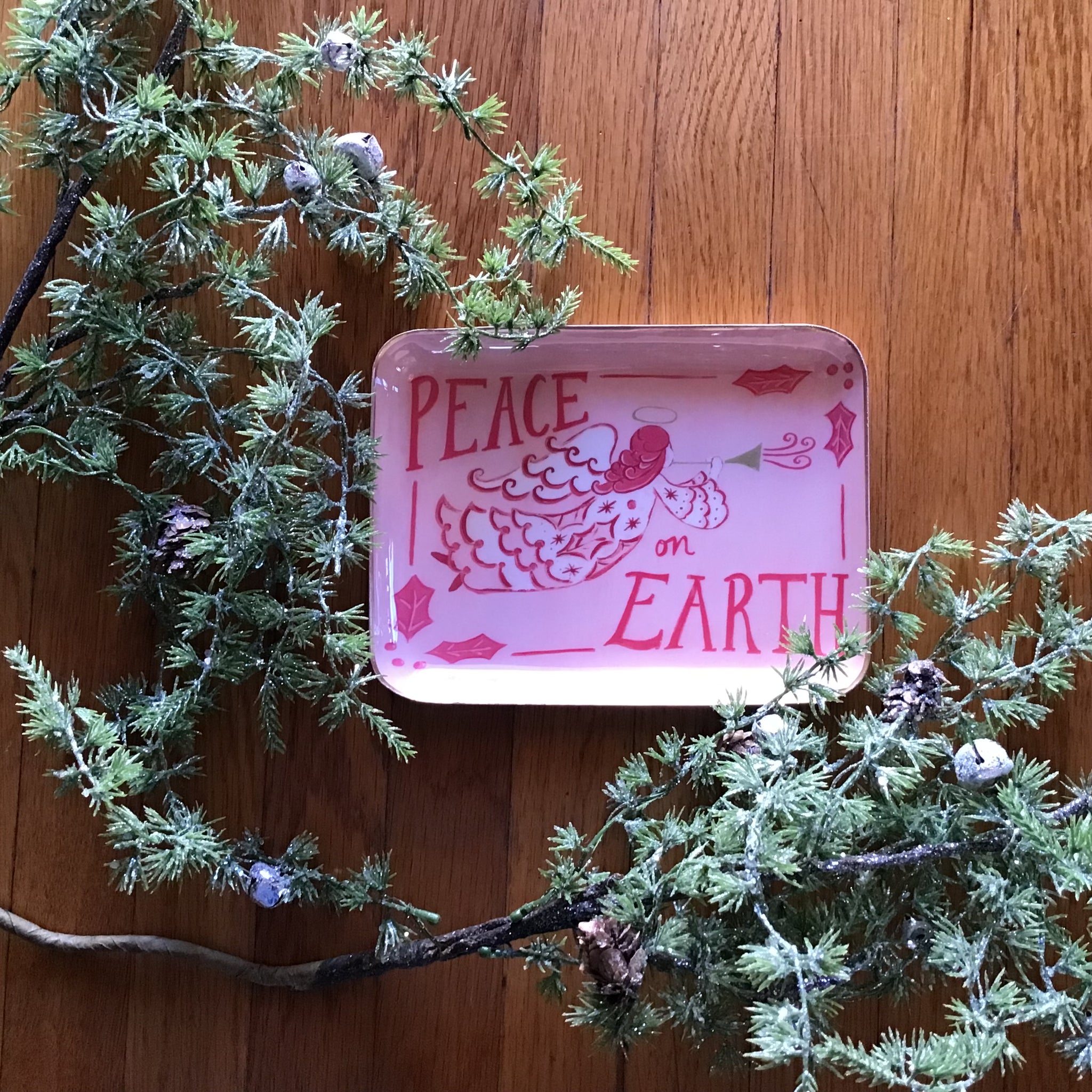 Get into the Holiday spirit with these beautifully decorated enameled metal trays.