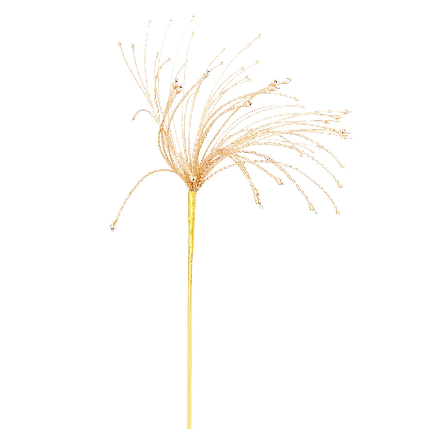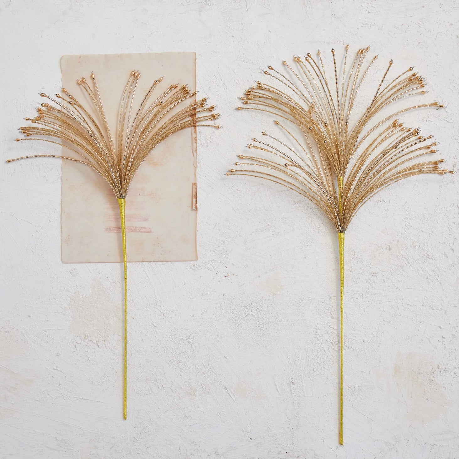 This metal and glass beaded spray is a lively and sparkling piece that will enhance any space. The spray features metal, glass, and acrylic beads that have a gold finish and a soft texture, creating a chic and elegant effect. The spray also has an organic shape that gives it a natural and whimsical appeal, creating contrast and balance. The spray is made of metal, glass beads, and acrylic beads, with a durable and smooth quality. It is easy to clean and maintain. The spray measures 15 inches in length, 15 inches in width, and 22 inches in height. The spray is a versatile and stylish piece that can be placed in a vase, basket, or wall, or for making a wreath or bouquet. It is a perfect addition to any space that needs some glamour and shine. A lively and sparkling metal and glass beaded sprays with a gold finish and an organic shape. A perfect addition to any space that needs some glamour and shine. Ideal for placing in the vase, basket, or wall, or for making a wreath or bouquet.