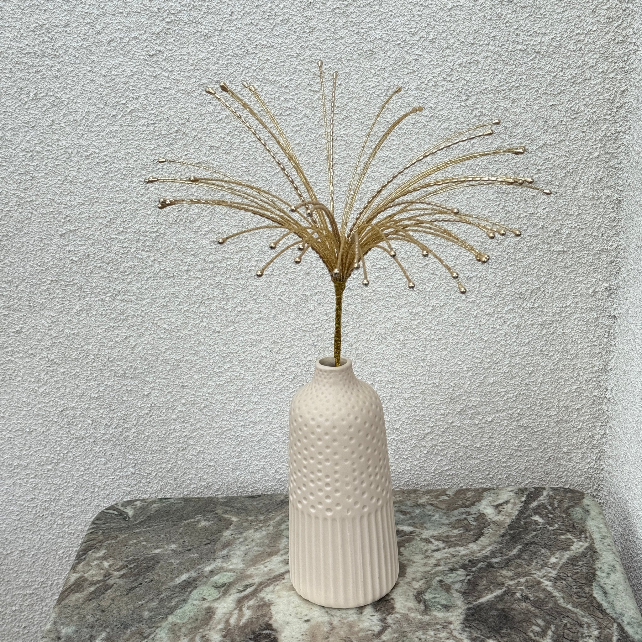 Glass Beaded Metal Spray with Acrylic Beads and a gold finish.
