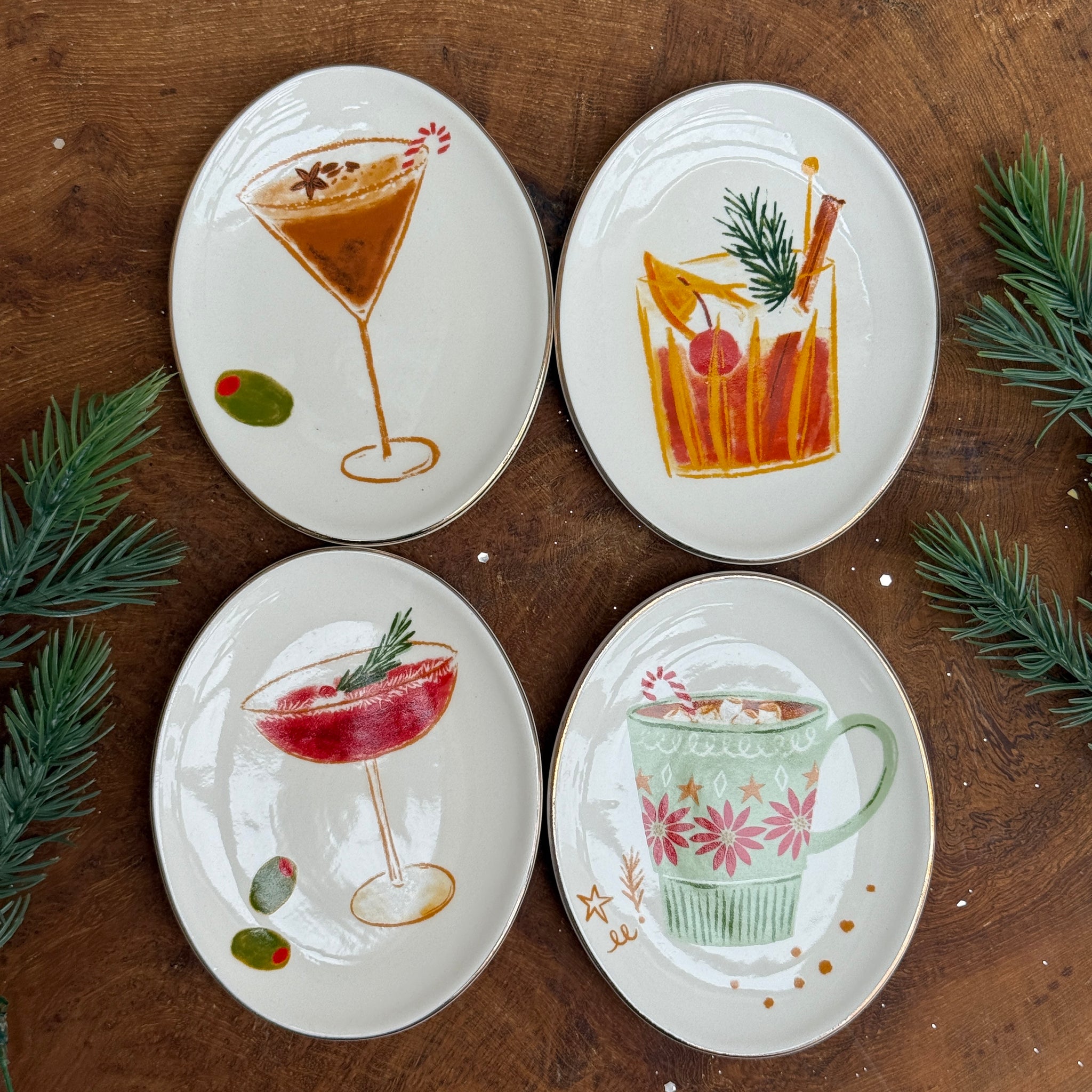 This Holiday Oval Stoneware Dish is the perfect addition to your holiday table setting. Available in four different styles, this dish features festive cocktail designs that will add a fun touch to your dining experience.