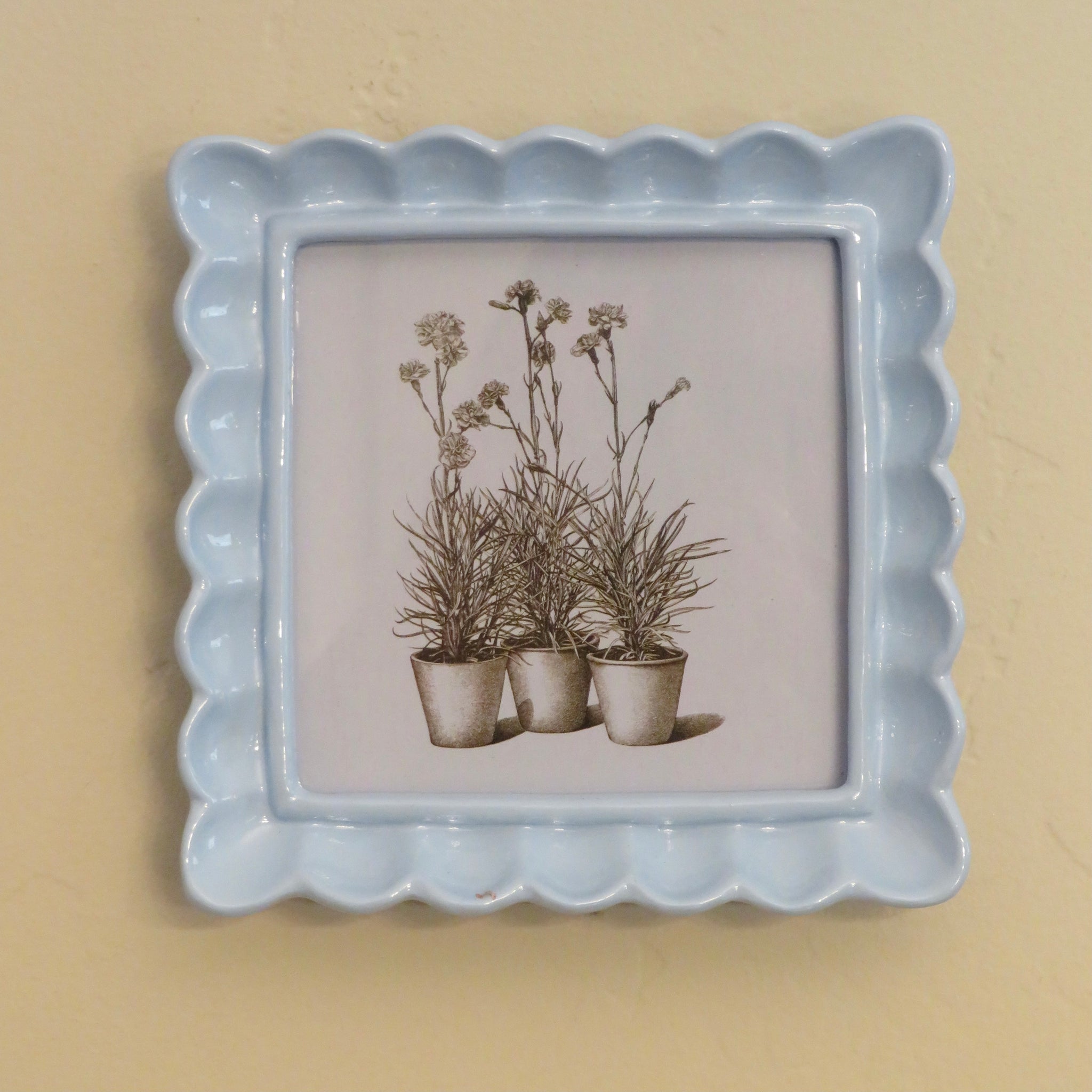 Resin Ruffled Frames in 6 different colors, featuring different art prints, or feel free to replace with your own each fits a 4x4 photo.