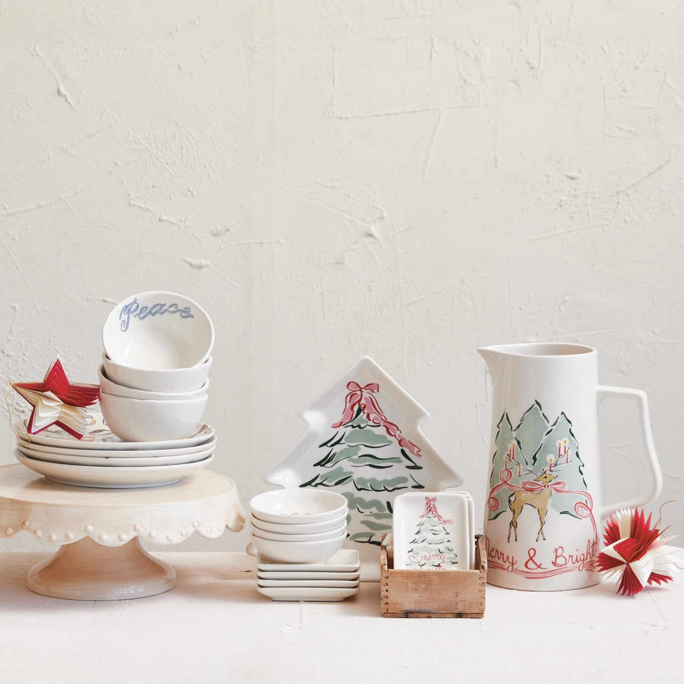 Crafted from durable pastel white stoneware, this tree shaped plate brings a touch of whimsy to any table setting.